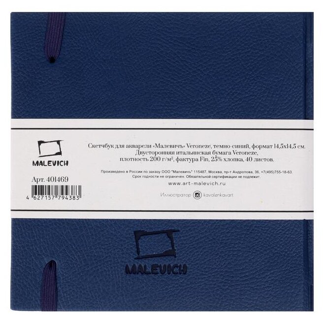 Скетчбук для акварели Малевичъ, 100% хлопок, 300 г/м, 18х18, 20л
