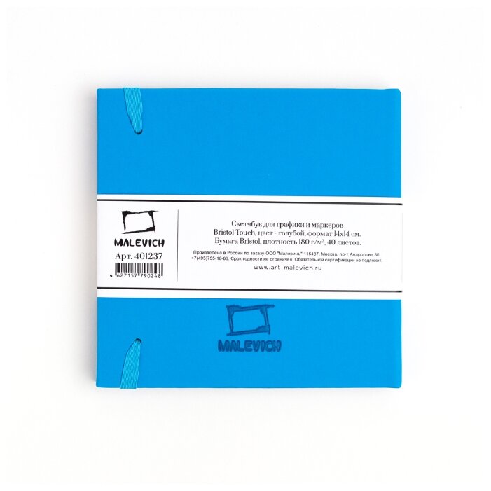 Скетчбук Малевичъ для графики и маркеров Bristol Touch, голубой, 180 г/м, 14х14 см, 40л