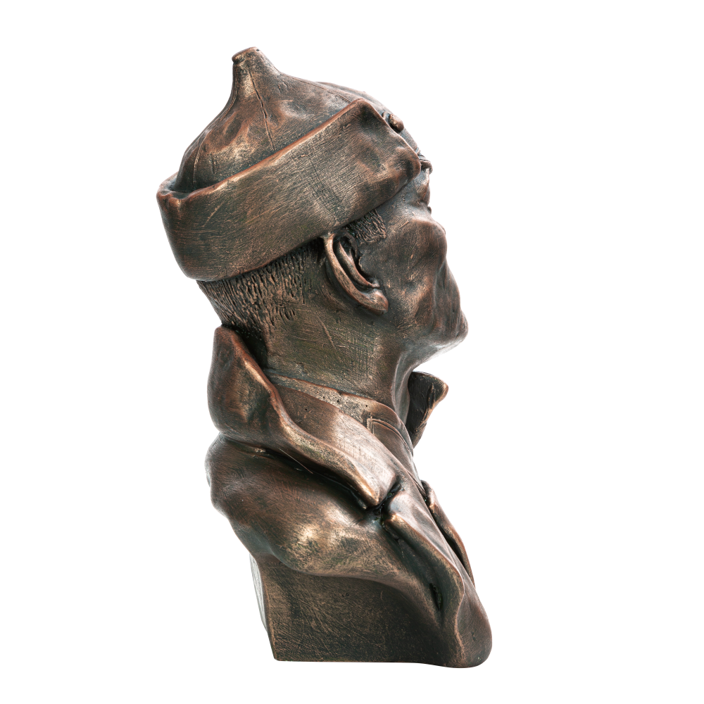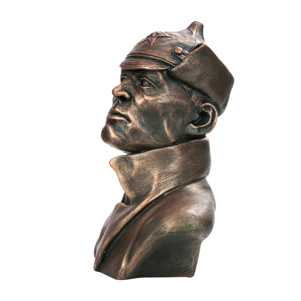 Бюст советского солдата в будёновке, выполненный в искусственном камне с максимальной детализацией, украсит уже существующую коллекцию скульптур советских военнослужащих или станет первым ее экспонатом. Особенную художественную ценность работе придает авторство Алексея Карамазова — члена Союза художников России.