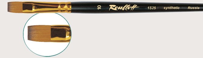 Кисть плоская с укороченной выставкой из синтетики под колонок, обойма алюминиевая, анодированная, ручка короткая, черная, матовая. Используется для прорисовки прямых линий и прямоугольных форм. Серийно выпускаются: 2; 3; 4; 6; 7; 8; 10; 12; 14; 16; 18; 20; 22; 24; 26; 30; 36.
