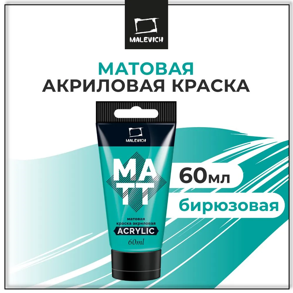 Краска акриловая матовая Малевичъ, туба 60 мл, бирюзовая