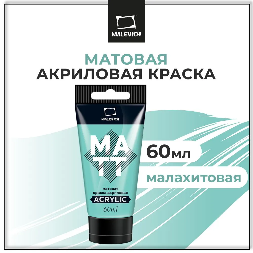 Краска акриловая матовая Малевичъ, туба 60 мл, малахитовая