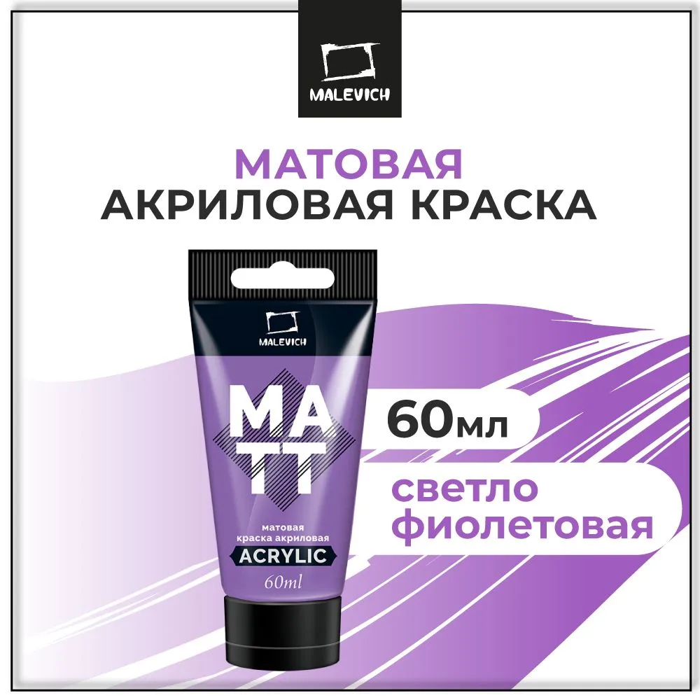 Краска акриловая матовая Малевичъ, туба 60 мл, светло-фиолетовая