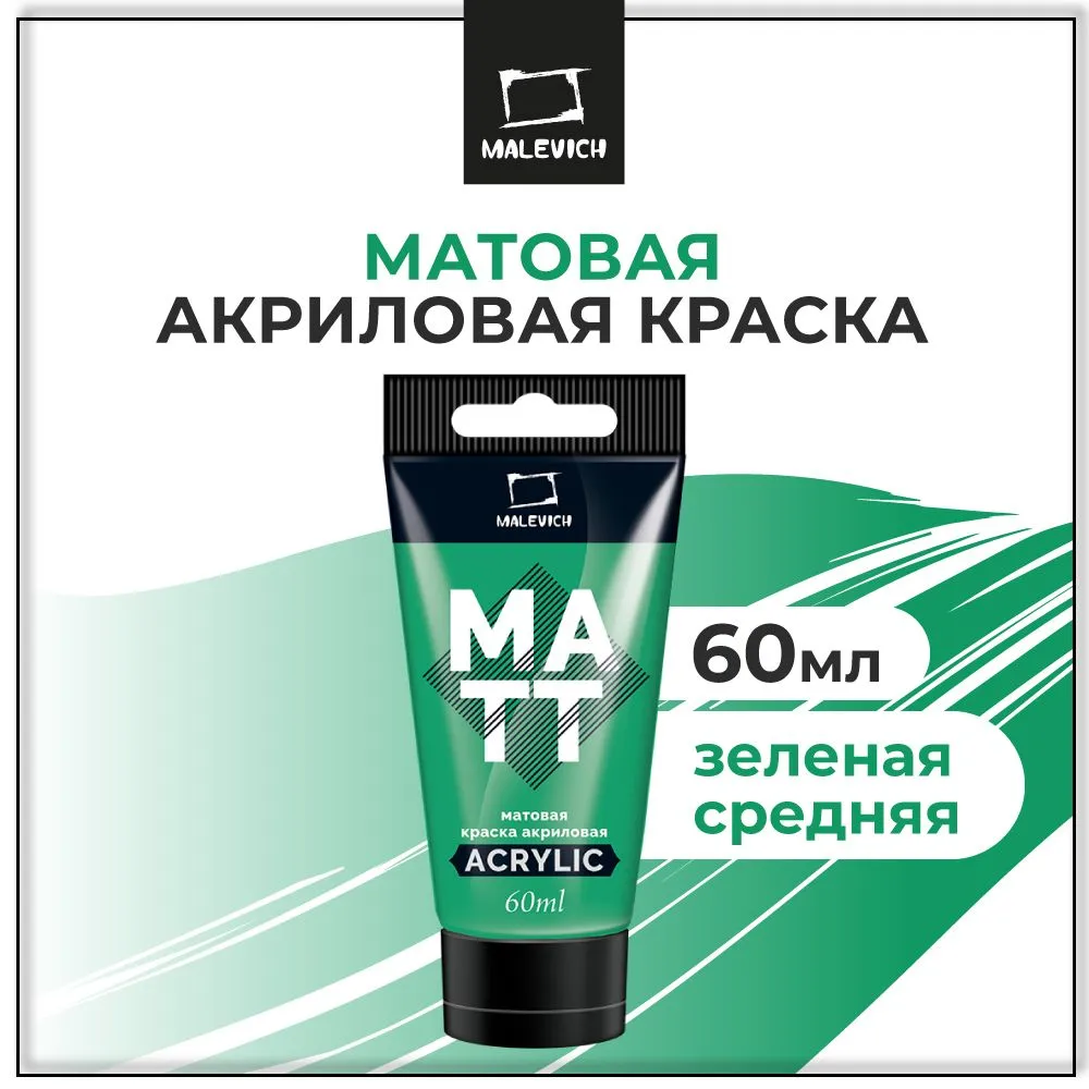 Краска акриловая матовая Малевичъ, туба 60 мл, зеленая средняя