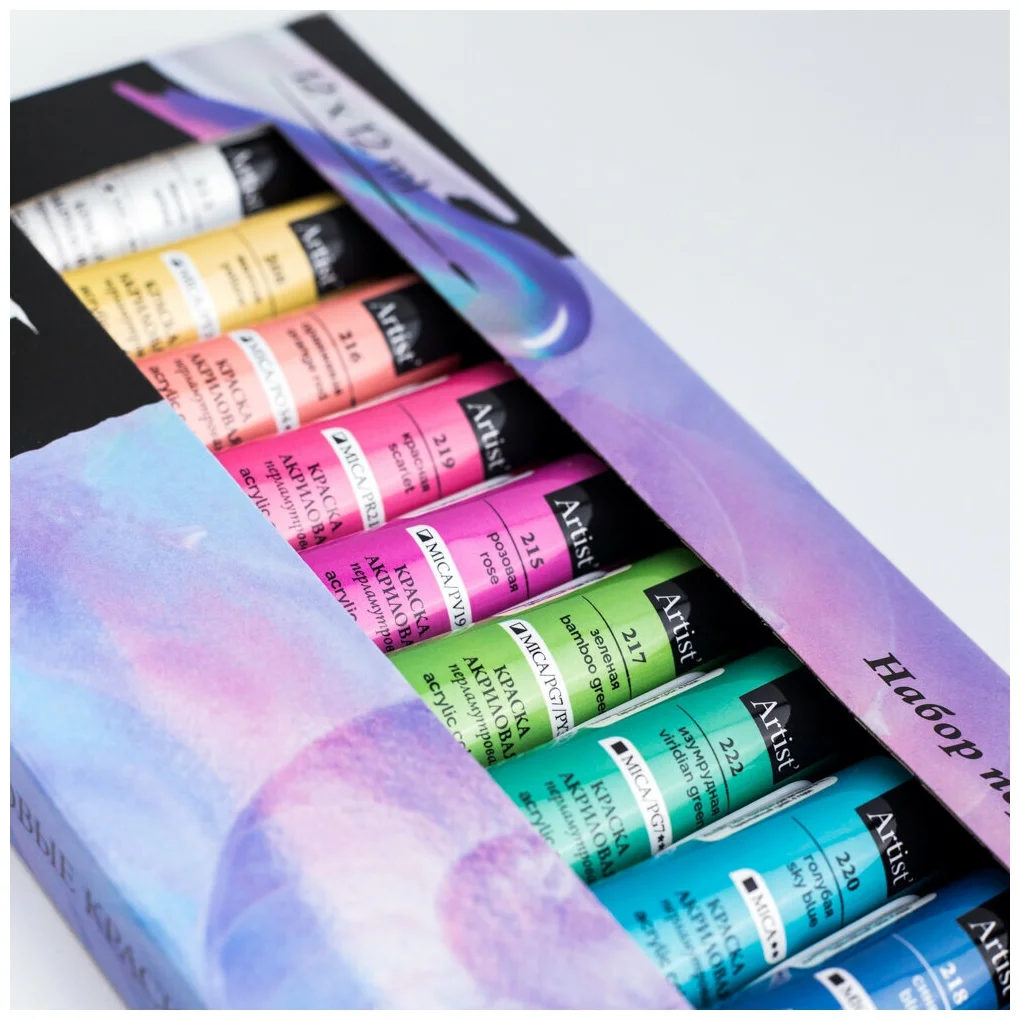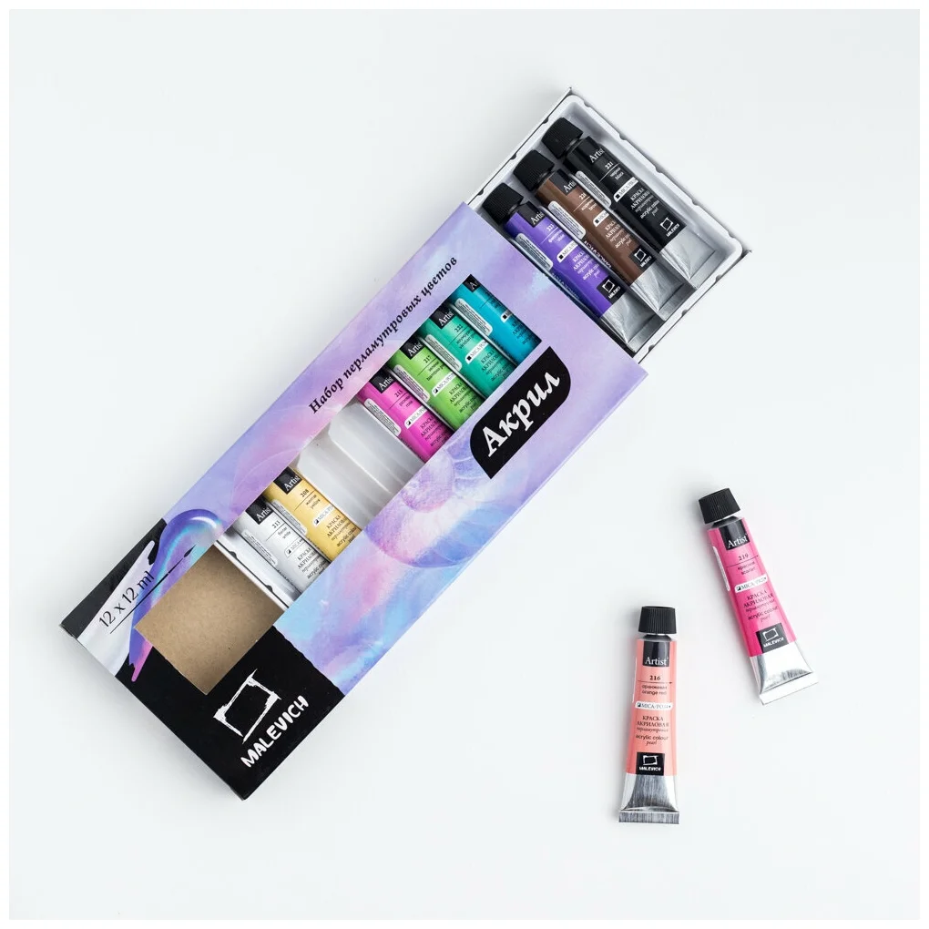 Набор перламутровых акриловых красок Малевичъ, 12 цветов по 12 мл