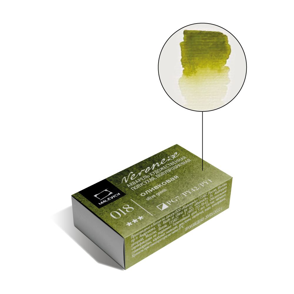 Акварель Малевичъ Veroneze, кювета 2,5 мл, Оливковая