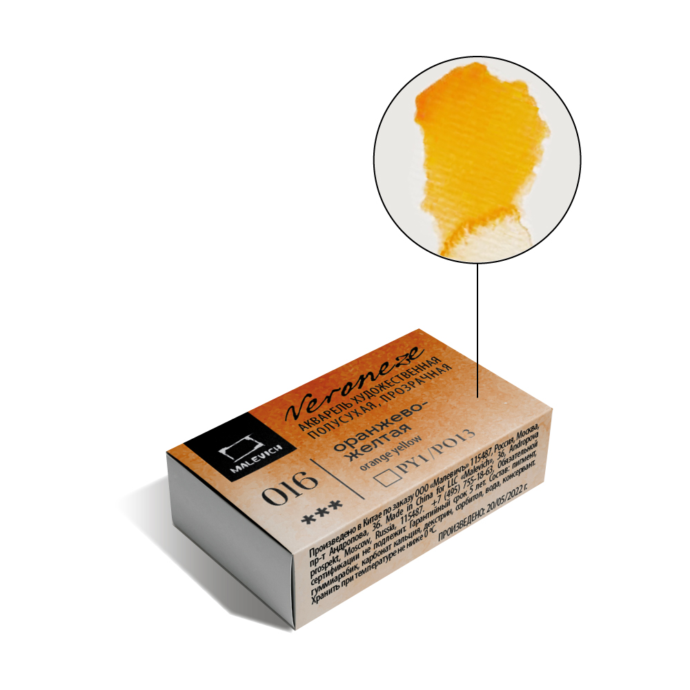 Акварель Малевичъ Veroneze, кювета 2,5 мл, Оранжево-желтая