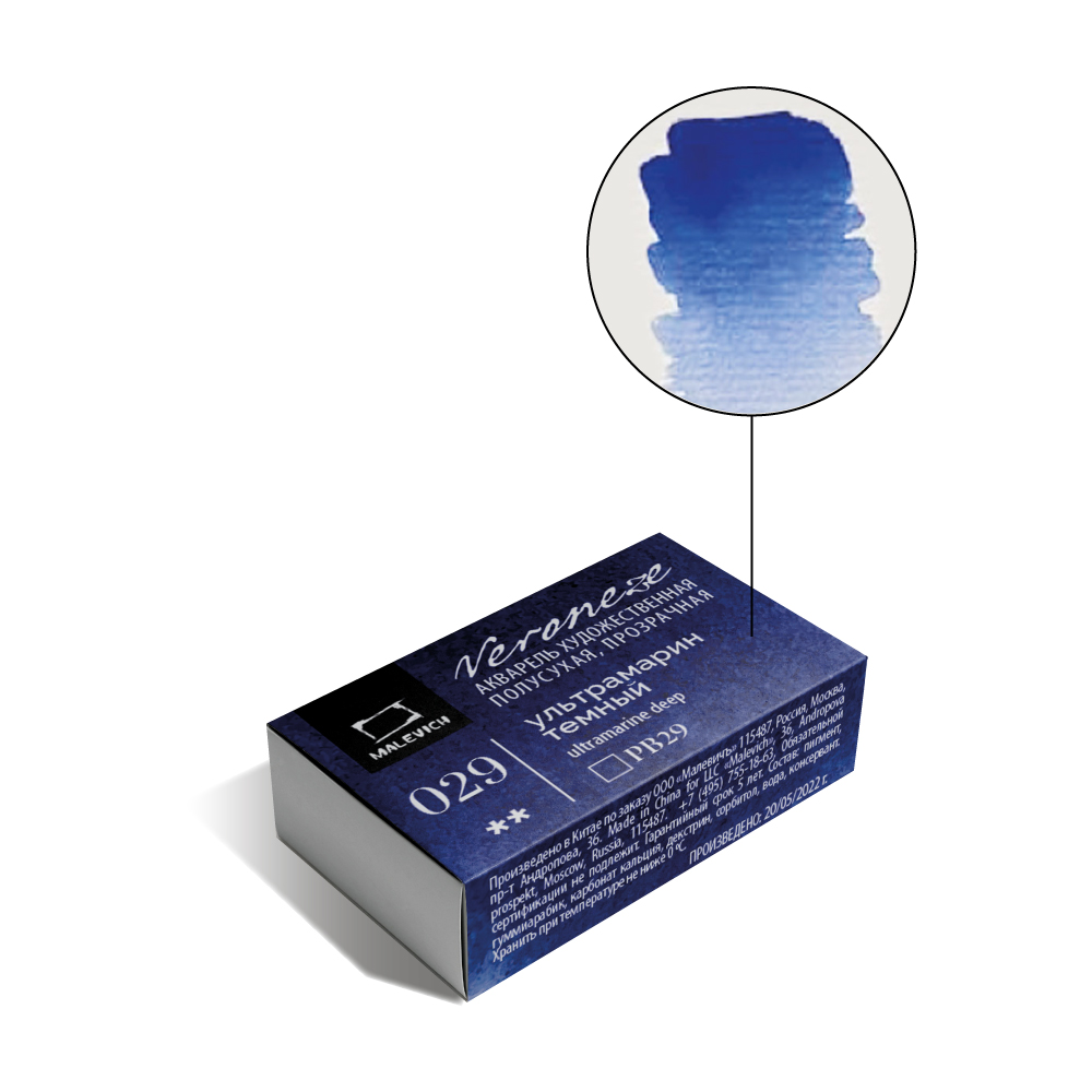 Акварель Малевичъ Veroneze, кювета 2,5 мл, Ультрамарин темный